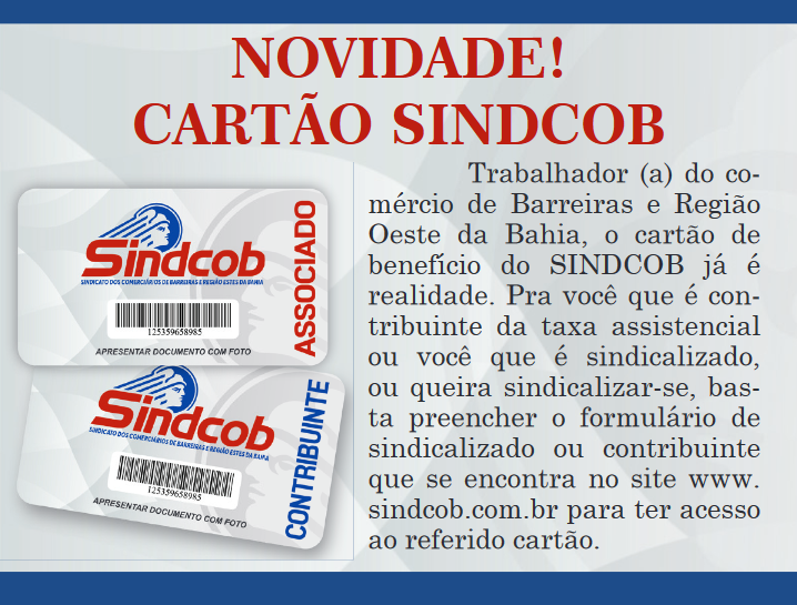 Trabalhador (a) do comércio de Barreiras e Região Oeste da Bahia, o cartão de benefício do SINDCOB já é realidade. Pra você que é contribuinte...